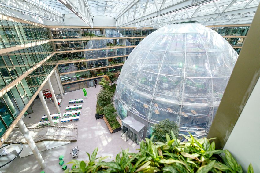 Doch zurück zum Presse-Event: Nachdem alle Teilnehmenden in drei Gruppen den ersten und zweiten Gebäudeabschnitt des EUREF-Campus Düsseldorf besichtigt hatten, ging es mit einem Impuls-Vortrag in der EEUREF-Kuppel weiter.