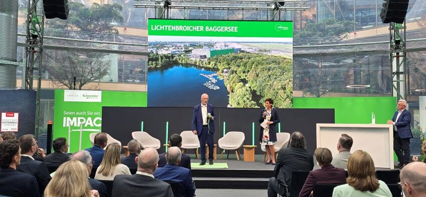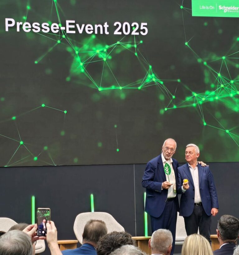 Für sein visionäres Engagement für die Energiewende und eine nachhaltige Zukunft wurde Dr. Reinhard Müller im Rahmen des Presse-Events mit dem Schneider Electric European Sustainability Award ausgezeichnet.